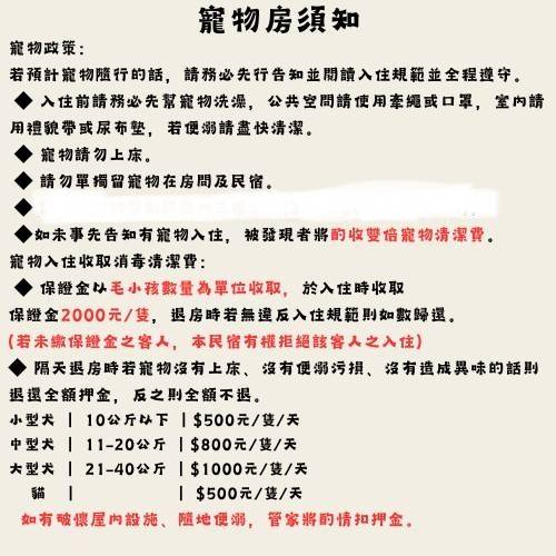 ♕ 因本民宿配合多個平台, 若有重複訂房之狀況,已先付款之訂房為主,後面的訂單本民宿保有返還訂金,取消訂房之權利。